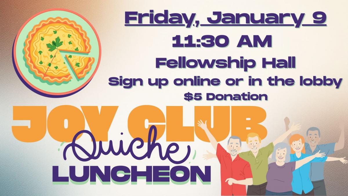 We're kicking off the new year serving up something egg-stra special! Join us for a Quiche Luncheon on Friday, January 9 at 11:30 AM. ($5 donation)